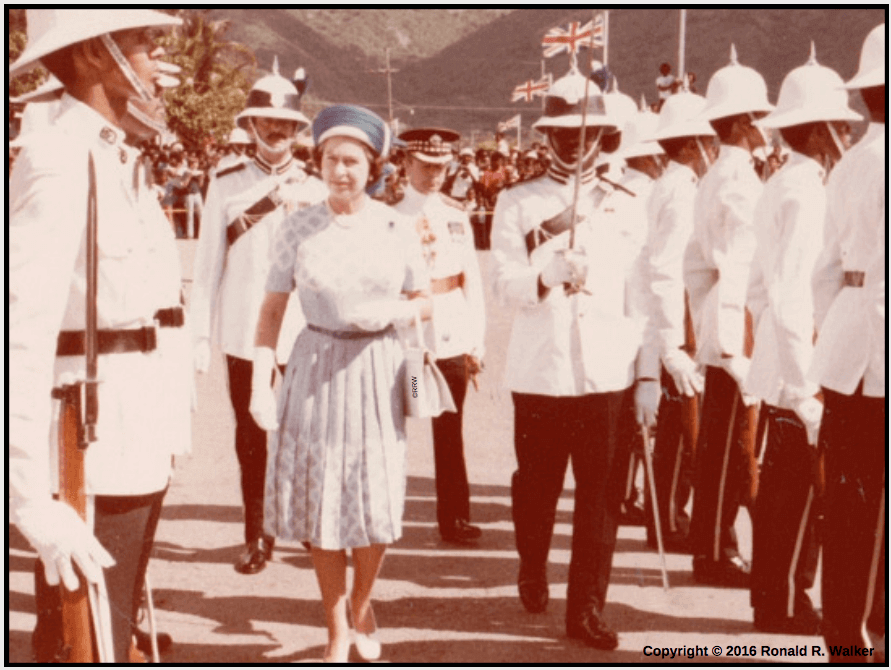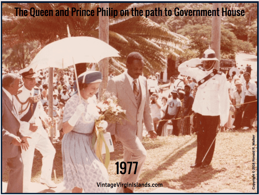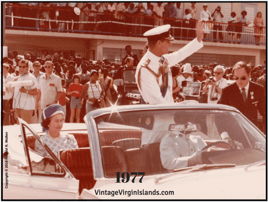 In 1977, my uncle, Ron Walker, photographed Queen Elizabeth II and Prince Philip as they arrived on Tortola for a short visit. Β
