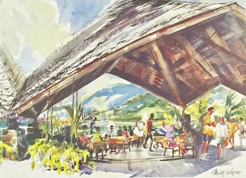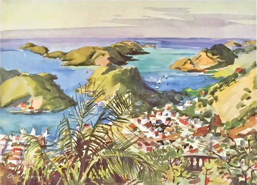 These beautiful watercolors captured the holiday spirit at Caneel Bay, busy downtown St. Thomas, a panoramic view of Charlotte Amalie and Little Dix Bay on Virgin Gorda.