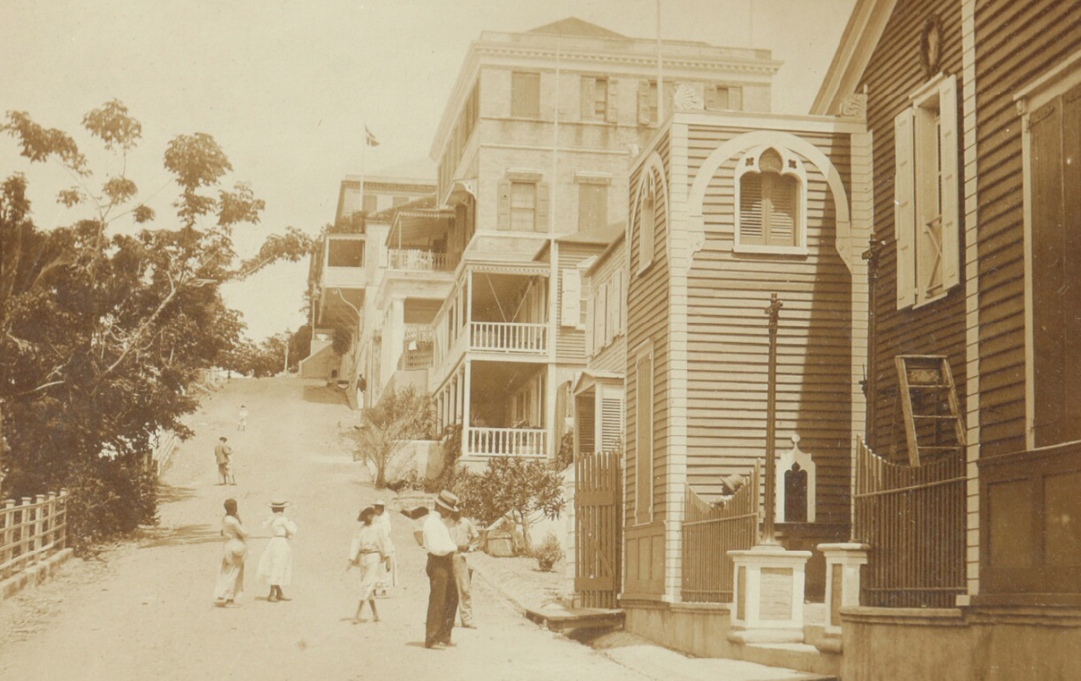 It includes photographs of Main Street in St. Thomas, the Police Station, Emancipation Garden, Grand Hotel, Det Beltjen’s Road, Long Bay, the Danish Church, the Danish Export Trading Company, the harbour, and the Governor’s residence!